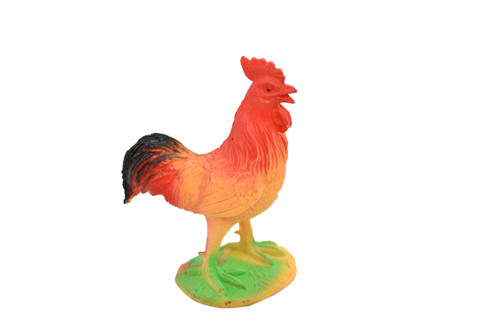 Rooster, Chicken, Red Rooster, Hand Painted, Realistic, Plastic Animal Design, Barn Bird, Educational, Diorama Model, Lifelike, Toy, 4 1/2 Inches.